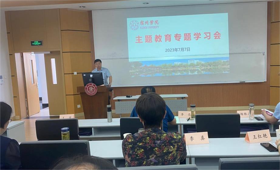 7月7日上午,我院在上海交通大学主办的宿州学院中层干部综合素质能力提升培训班期间,及时跟进学习贯彻省委主题教育工作部署要求,召开了主题教育专题学习会。院领导李亮、王俊、杨维志,职能部门负责人,二级学院党政主要负责人参加会议。会议由党委委员、纪委书记,监察专员王俊主持。会上,王俊传达学习了省委书记韩...