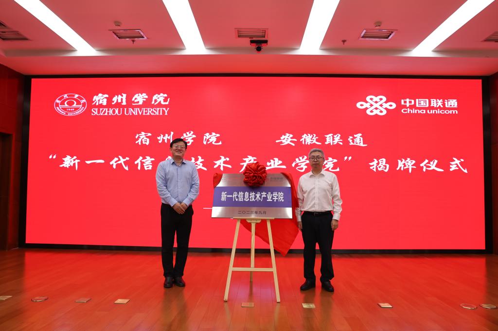 9月1日下午,宿州学院﹒安徽联通战略合作协议签约仪式在合肥举行。我院党委书记李红,党委副书记、院长李福华,党委委员、副院长李亮,以及安徽联通党委书记、总经理韩冰,党委副书记、副总经理陈铭,党委委员、副总经理刘鸿涛等出席了活动。李红介绍了宿州学院基本情况,指出此次签约,是深化产教融合、校企合作、协同...