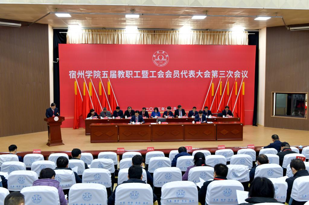 12月13日上午,宿州学院五届教职工暨工会会员代表大会第三次会议在宿州学院教育园区教学楼报告厅隆重开幕。在校院领导李红、王俊、杨维志出席会议,教代会和工代会代表共141人参加会议。院党委副书记王俊主持会议。院党委书记李红作题为《团结奋斗 实干笃行 奋力开创地方应用型高水平大学建设新局面》的工作报告。报告指...