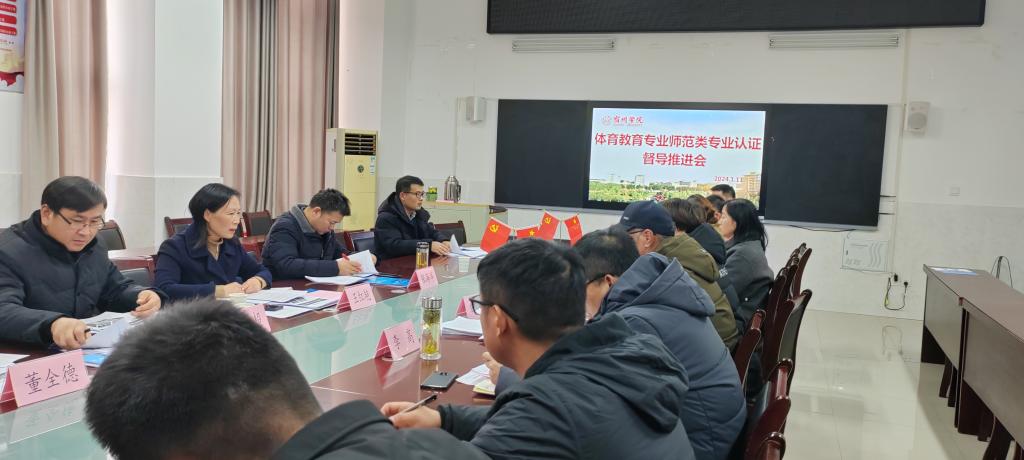 1月11日,我院在体育学院、音乐学院会议室分别召开师范类专业第二级认证工作督导推进会。党委委员、副院长王红艳,发规处处长,教务处处级干部和相关科室科长,外国语学院和环测学院院长,体育学院和音乐学院处级和科级干部,体育教育和学前教育专业负责人参加会议。会议由王红艳主持。体育学院、音乐学院院长分别汇报了...