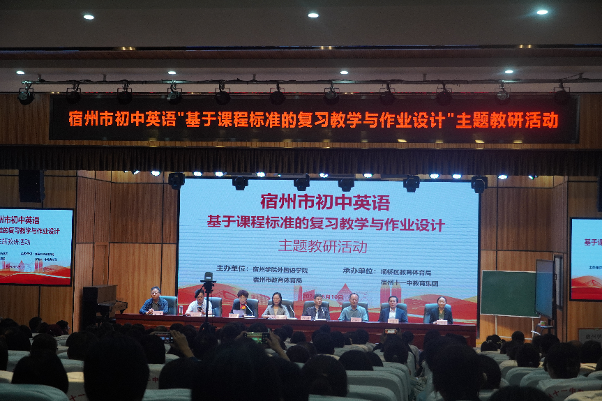 5月10日,宿州学院联合宿州市教体局举办初中英语“基于课程标准的复习教学与作业设计”主题教研活动。此次活动在宿州市十一中教育集团银河四路校区举行,宿州市四县一区初中英语骨干教师以及宿州学院教师和学生代表共400余人参加了此次教研活动。宿州学院党委委员、副院长王红艳,宿州市教体局二级调研员佟涛,宿州市埇...