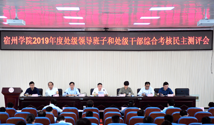 根据《宿州学院处级领导班子和处级干部综合考核办法(试行)》和学校2019年度综合考核工作安排,5月27日,我校在逸夫楼第二会议室召开2019年度处级领导班子和处级干部综合考核民主测评会。校领导班子成员汪刘送、张莉、蔡之让、李亮、梁琦、张英彦、王俊出席会议,处级干部,省级“两代表一委员”、民主党派市级以上主委...
