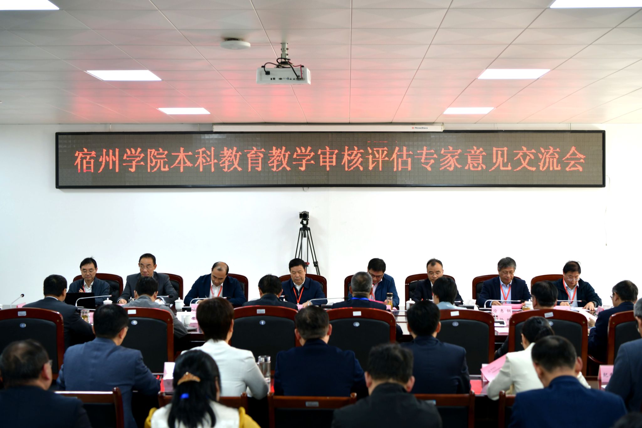4月15日下午,宿州学院本科教育教学审核评估专家意见交流会召开。审核评估专家组组长、江苏理工学院原党委书记朱林生,专家组副组长、合肥师范学院副校长周端明及入校考察专家组全体成员出席会议,安徽省教育厅高等教育处处长高原、教育评估中心副主任严萍,宿州学院全体校领导、各职能部门主要负责人、各二级学院党政主...