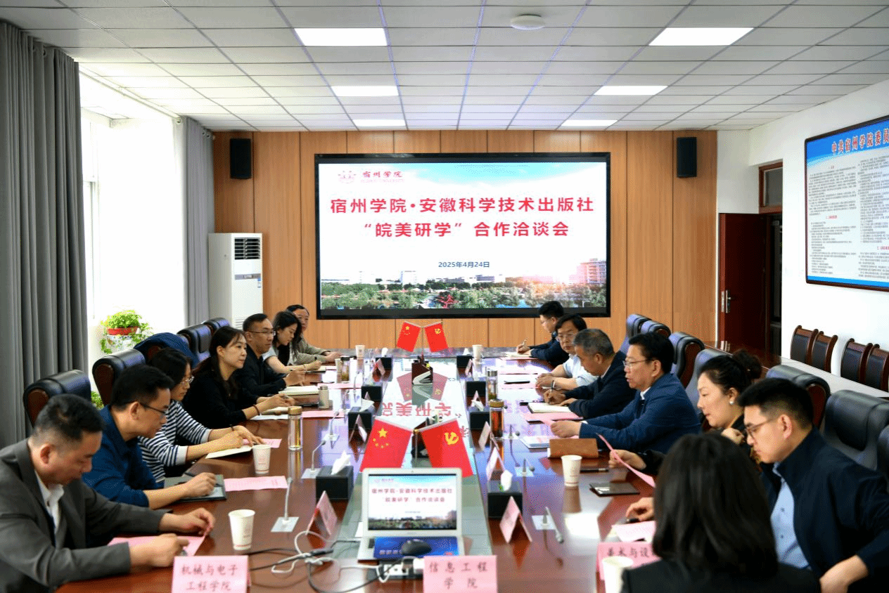 4月24日上午,安徽科学技术出版社社长王筱文一行来校洽谈校企合作事宜。校党委副书记、校长闵杰出席座谈会。党委常委、副校长杨维志主持会议。闵杰介绍了学校的办学历史、人才培养、校企合作、社会服务等。他指出,学校与安徽科学技术出版社有良好的合作点,希望双方充分发挥各自资源优势,在研学基地共建、研学课程建设...