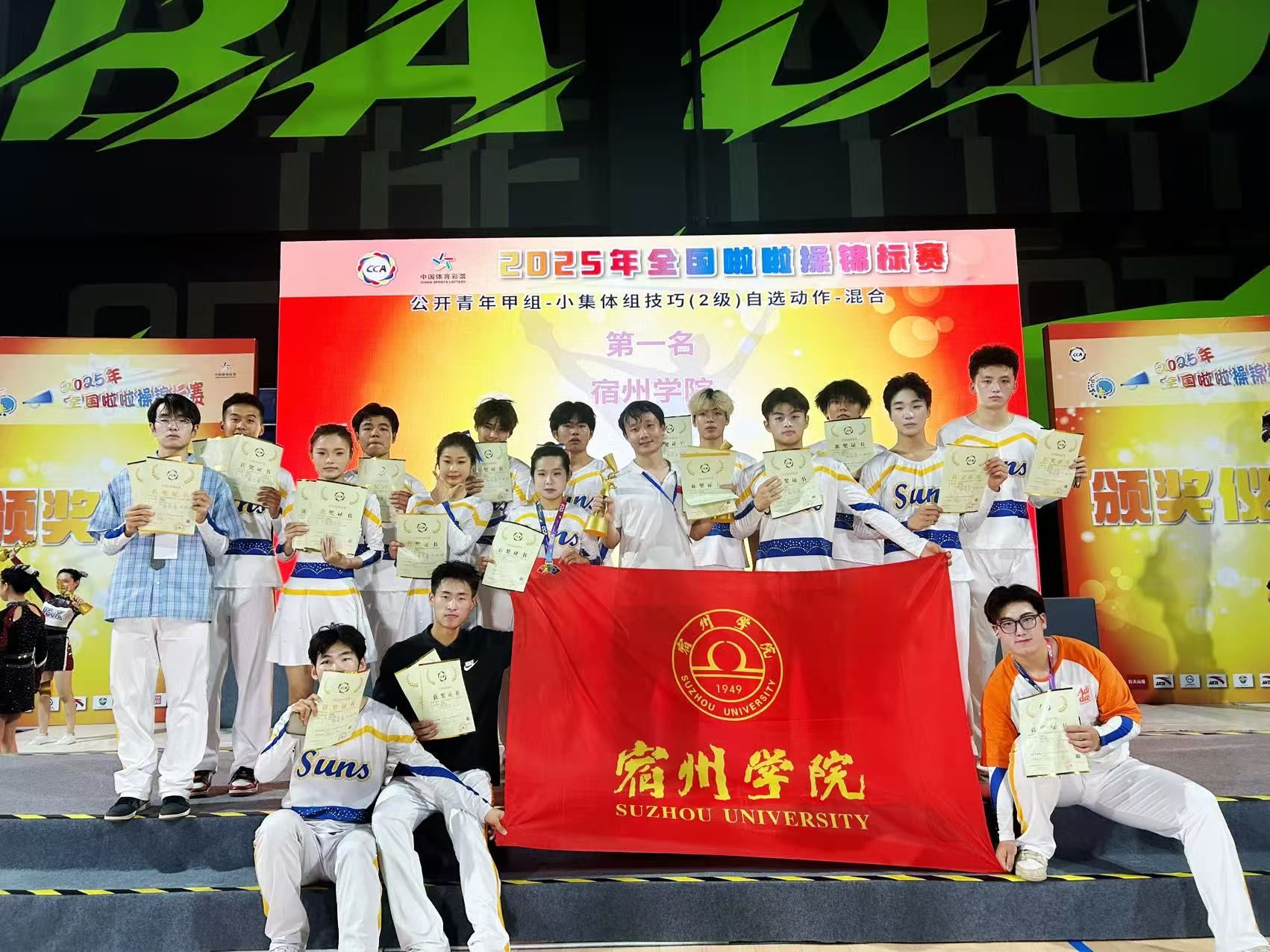 5月21日至28日,由国家体育总局体操运动管理中心、中国蹦床与技巧协会、安徽省体育局等联合主办的2025年全国啦啦操锦标赛在合肥举行。宿州学院啦啦操队凭借扎实的基本功、极具创意的编排和默契的团队协作,荣获公开青年甲组大集体技巧二级混合自选动作第一名、公开青年甲组小集体技巧二级混合自选动作第一名、公开青年甲...
