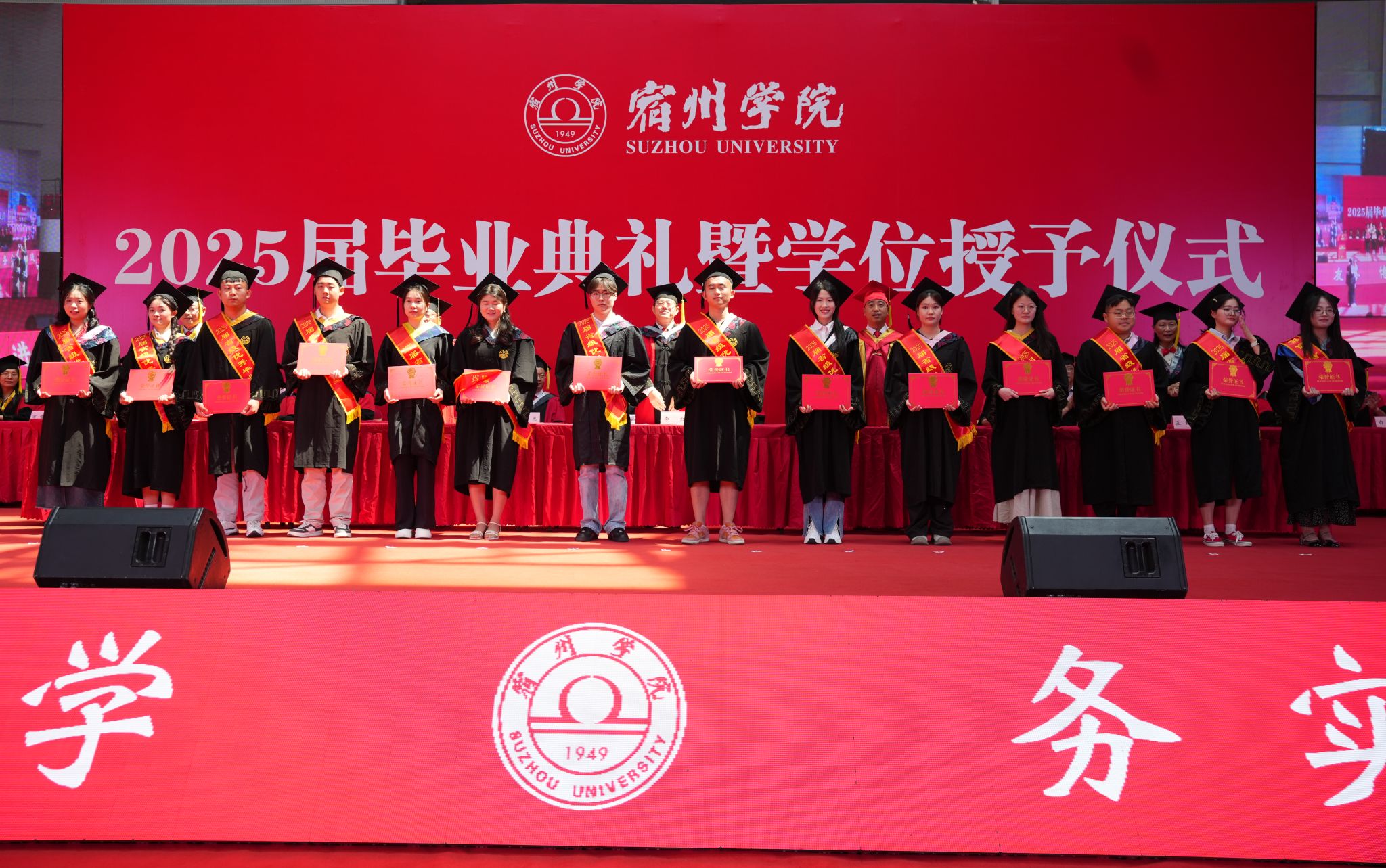 盛夏蝉鸣骊歌起,青春扬帆正当时。6月17日上午,宿州学院2025届毕业典礼暨学位授予仪式在教育园区校区体育馆举行。校领导、校学位评定委员会委员,各部门主要负责同志,各二级学院党委书记、院长、党委副书记,2025届毕业班辅导员,教师和毕业生代表齐聚一堂,共同见证这一镌刻青春记忆的重要时刻。 毕业典礼在庄严的...