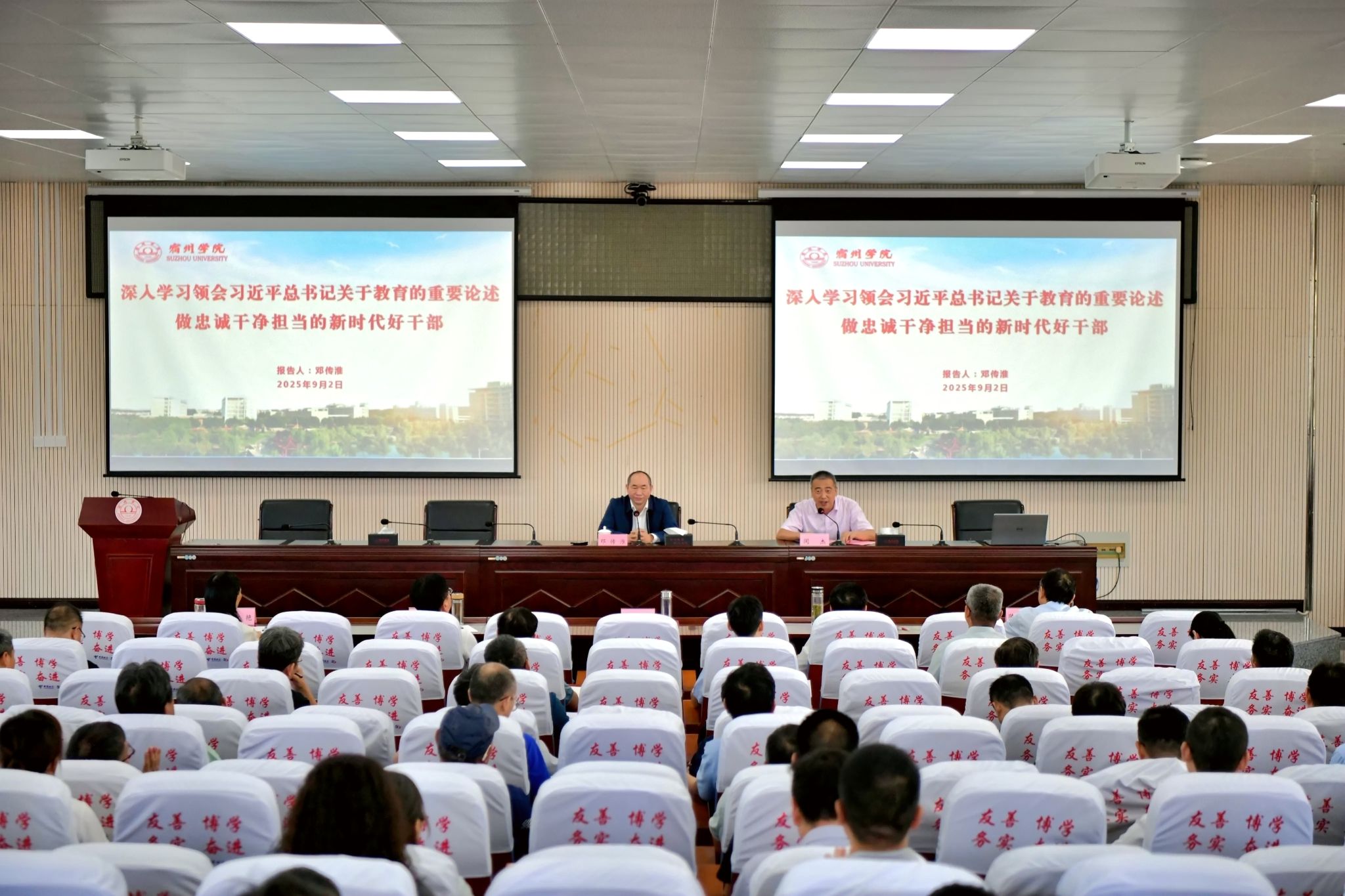 9月2日下午,我校在逸夫楼第二会议室举办学习贯彻习近平总书记关于教育的重要论述专题报告会。中国教育学会学术委员会常务副主任委员、教育部政策法规司原司长邓传淮应邀作报告,校领导、副处级以上干部及办公室、组织部等部门科级干部参会,会议由党委副书记、校长闵杰主持。邓传淮以《深入学习领会习近平总书记关于教...