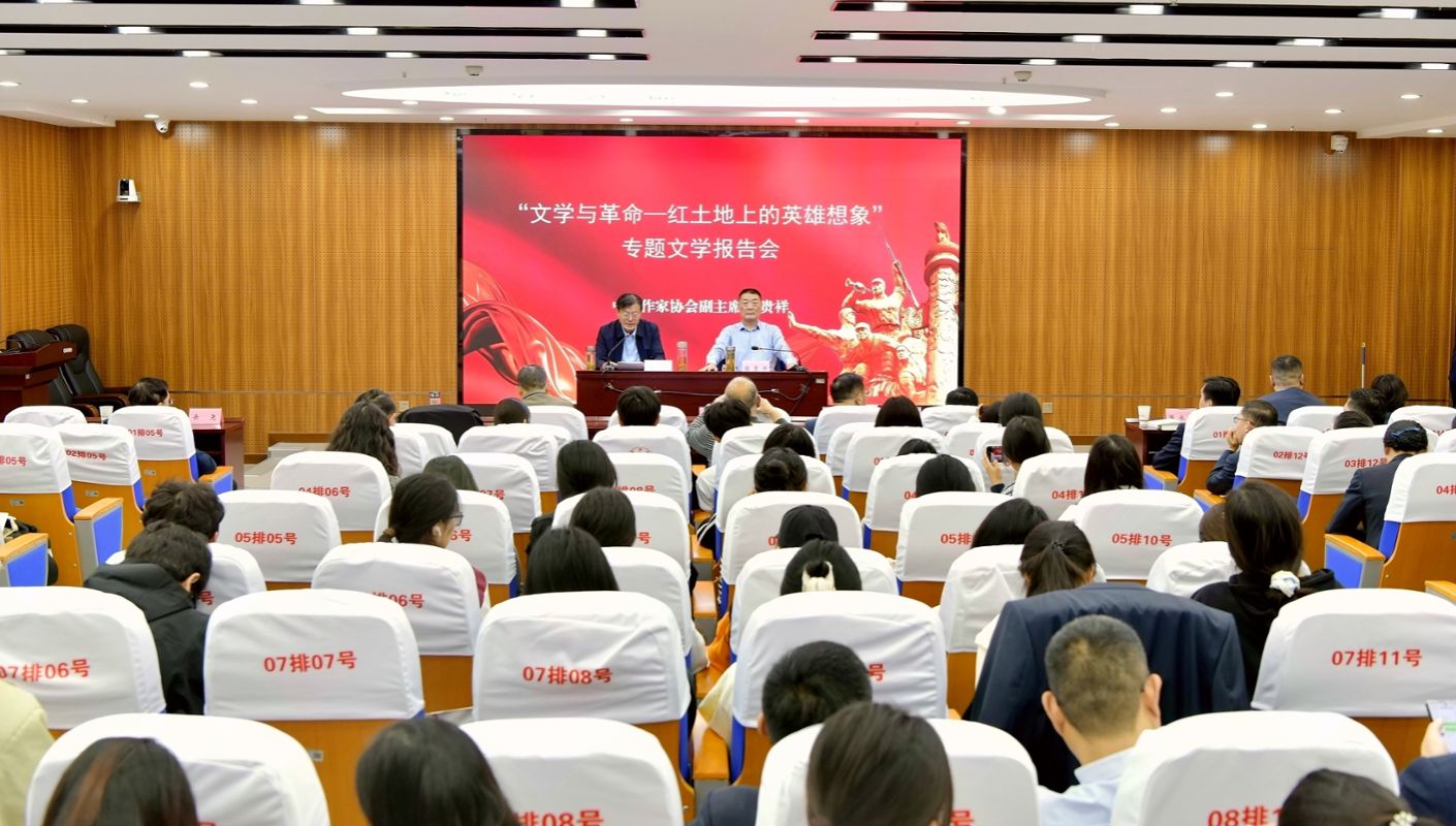 10月16日,中国作家协会副主席、中国作家协会军事文学委员会主任徐贵祥同志应邀来校作“文学与革命——红土地上的英雄想象”专题报告。校党委书记李红主持报告会。徐贵祥结合自身读书创作经历和茅盾文学奖获奖作品《历史的天空》,讲述了革命文学的重要意义,革命英雄人物梁必达的形象塑造,并围绕如何进行文学作品创作...