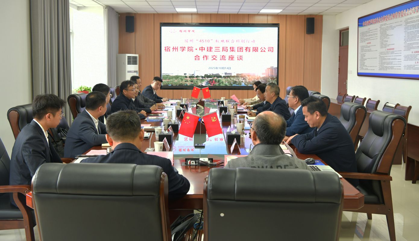 10月14日上午,中建三局集团有限公司华中分局局长胡金洲一行7人来校开展合作交流。校党委副书记、校长闵杰主持召开交流座谈会。校党委常委、副校长杨维志介绍了学校办学基本情况、发展目标、校园建设规划以及“4510”校地联合科创行动等情况。胡金洲介绍了公司的发展历程、产业板块、业态规模等总体情况以及科技创新、能...