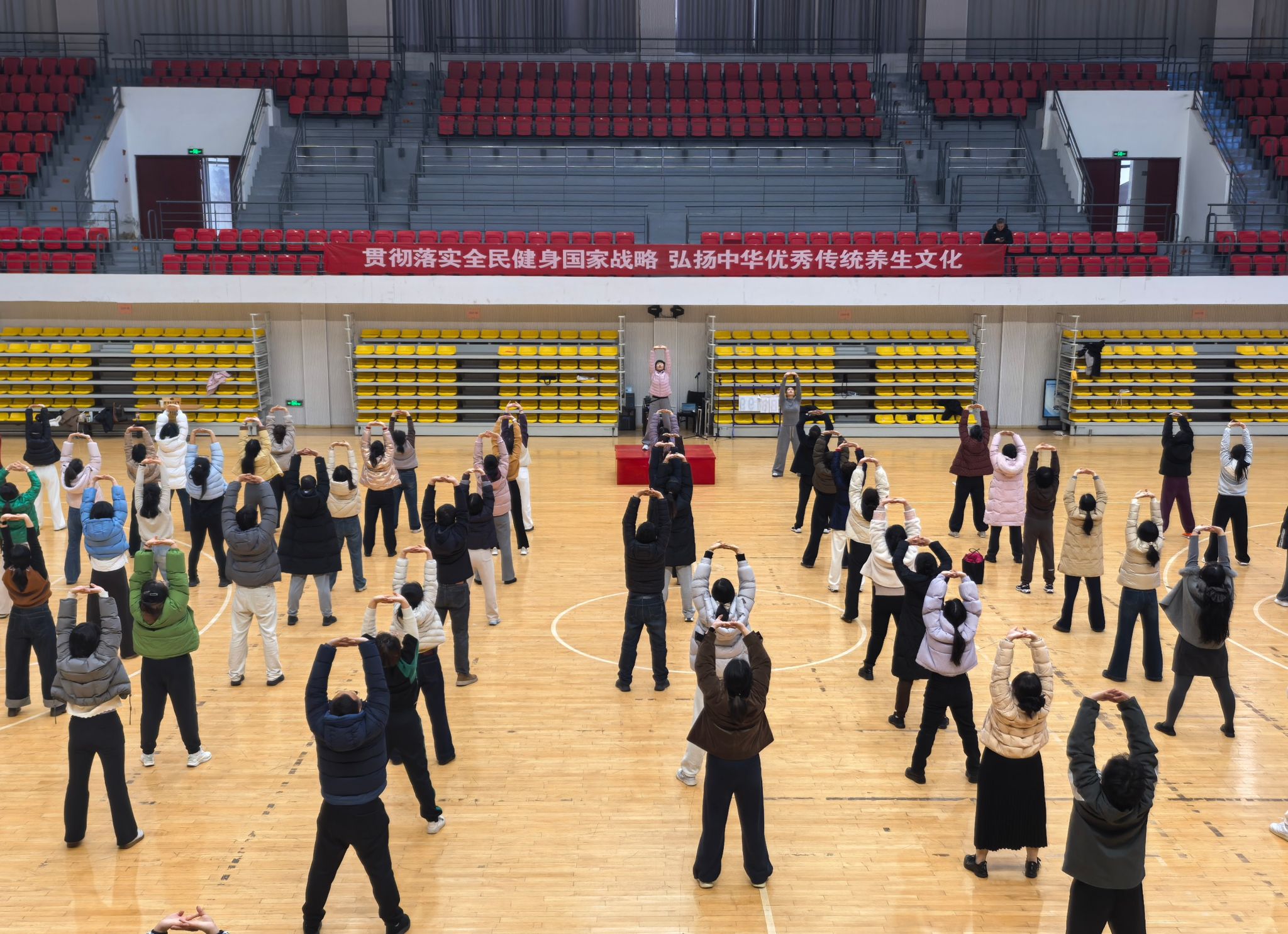 3月4日下午,由校工会、体育学院联合主办的2026年春季学期教职工“健身气功·八段锦”培训活动在体育学院篮球馆正式开课。校党委副书记、校长闵杰,党委常委、副校长陈松,体育学院党委书记李高、院长白明出席现场。来自全校各分工会的140多名教职工报名参加活动。校工会主席徐强主持活动。闵杰表示,学校始终高度重视师...