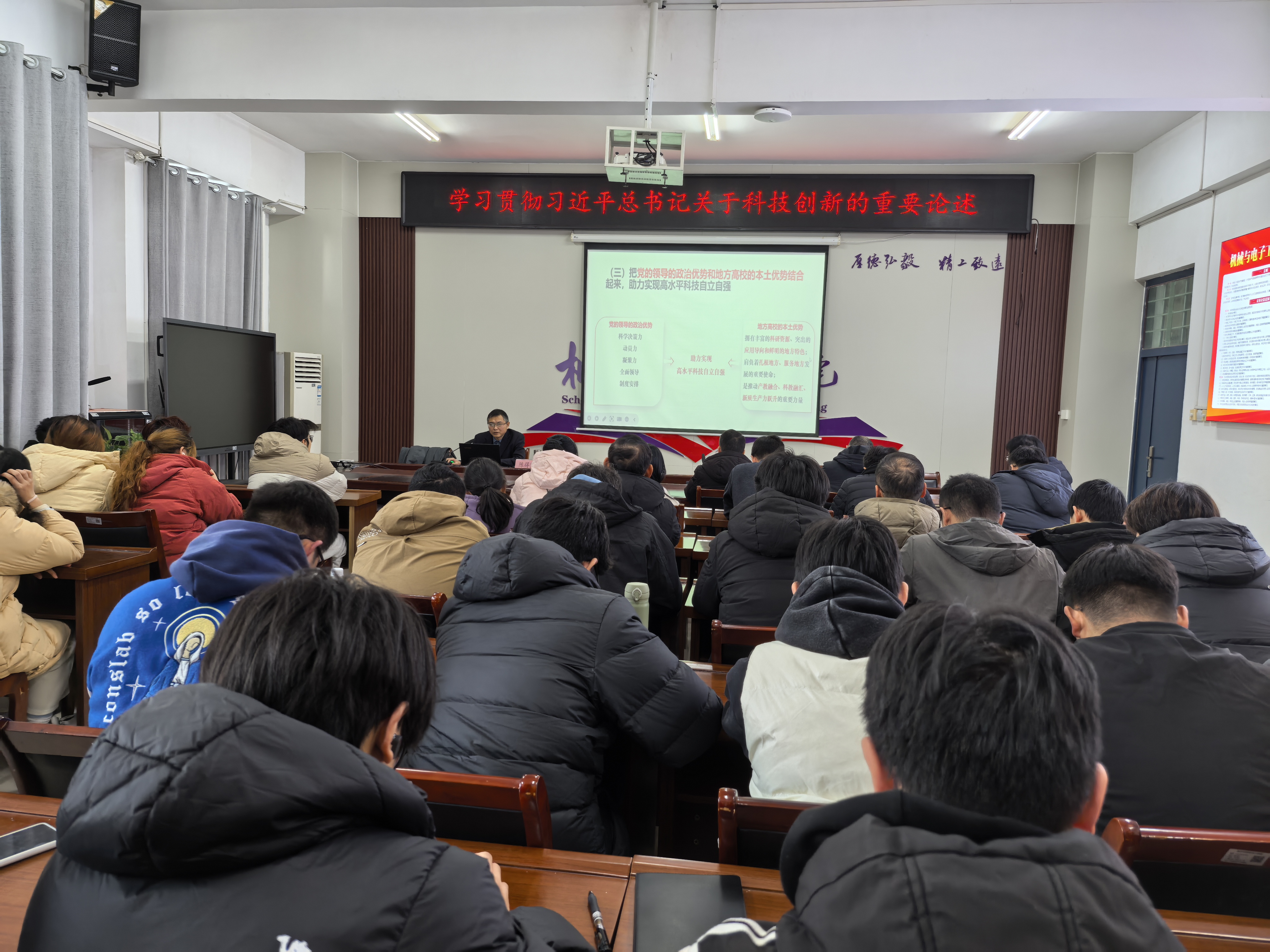 12月17日下午,副校长陈得宝走进机械与电子工程学院,围绕学习贯彻习近平总书记关于科技创新的重要论述,为机械与电子工程学院师生讲授了一场主题鲜明、内容丰富、富有思想性、理论性、亲和力的思政课。机电学院班子成员、部分教师及2023级机械制造1班的同学现场聆听了课程。陈得宝指出,党的十八大以来,习近平总书记...