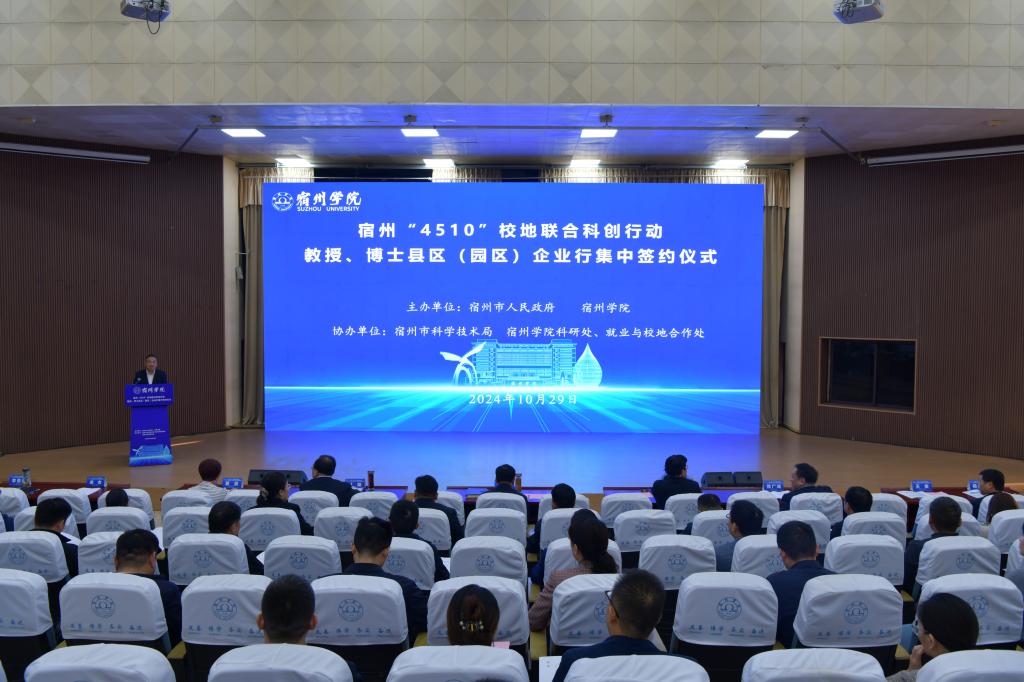 10月29日上午,宿州“4510”校地联合科创行动教授、博士县区(园区)企业行集中签约活动在我校教育园区校区举行。本次活动由宿州市人民政府、宿州学院主办。宿州市委副书记、市长王启荣,徽商银行股份有限公司党委书记、董事长严琛,安徽省商务厅党组成员、副厅长黄英,宿州市政府党组成员、秘书长李荣权,徽商银行股份...