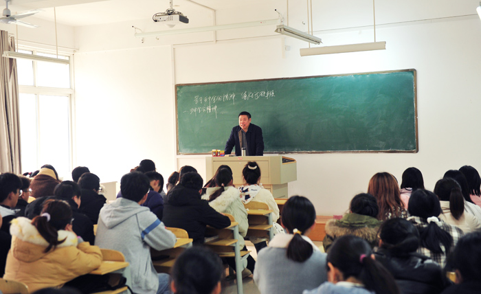 12月28日下午,宿州学院党委书记汪刘送走进课堂,在逸夫楼B109室为外国语学院学生上了题为《学习五中全会精神 练好过硬本领》的思政课。汪刘送围绕《中共中央关于制定国民经济和社会发展第十四个五年规划和二〇三五年远景目标的建议》起草过程、决胜全面建成小康社会取得决定性成就、《建议》的核心要义、二〇三五年远景...