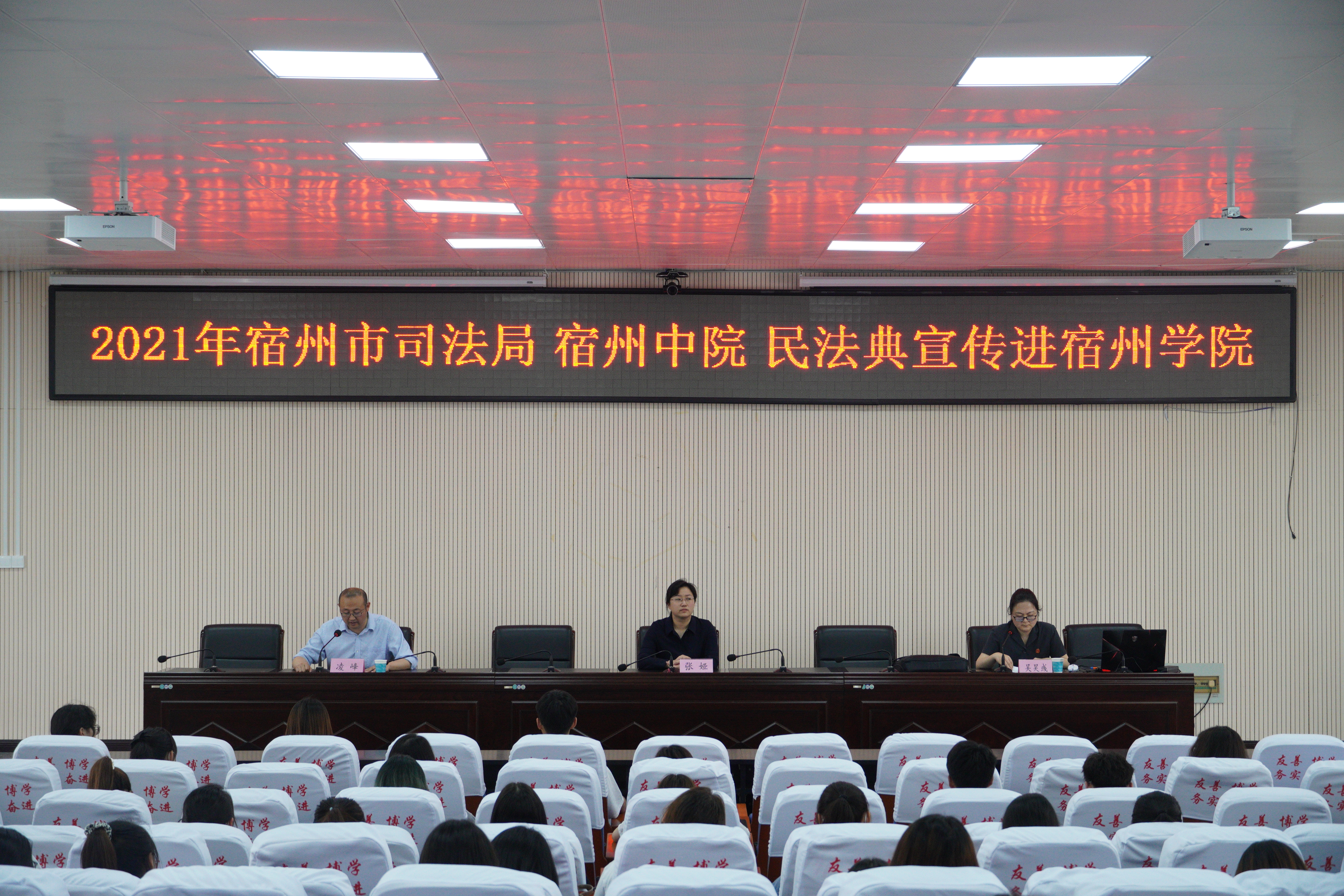 为进一步加强民法典宣传教育,理解领悟其法治精神,培养学生法治思维和自我保护意识。5月27日下午,我校联合宿州市司法局、宿州中院开展 “美好生活•民法典相伴”主题宣传活动。宿州市司法局普法与依法治理科科长张娅、宿州市中级人民法院民一庭副庭长吴昊彧,院团委、学生处、宣传部负责同志以及近200名学生代表参加活...