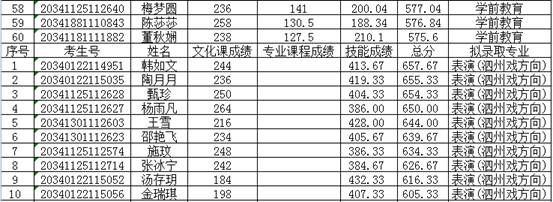 我校2020年面向中职毕业生对口招生考试的各阶段、各环节的工作已全部结束,根据《宿州学院2020年面向中职毕业生对口招生章程》中的录取原则,我校学前教育专业预录取60人,录取最低分数线为575.6分;表演(泗州戏方向)专业预录取10人,录取最低分数线为605.33分;软件工程专业预录取60人(其中6人为预免试录取),录取最低分数线为660.8分;自动化专业预录取60人(其中2人为预免试录取),录取最低分数线为593分;酒店管理专业预录取110人,录取最低分数线为610.67分。