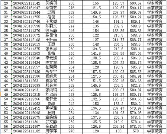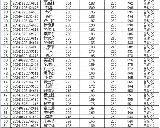 我校2020年面向中职毕业生对口招生考试的各阶段、各环节的工作已全部结束,根据《宿州学院2020年面向中职毕业生对口招生章程》中的录取原则,我校学前教育专业预录取60人,录取最低分数线为575.6分;表演(泗州戏方向)专业预录取10人,录取最低分数线为605.33分;软件工程专业预录取60人(其中6人为预免试录取),录取最低分数线为660.8分;自动化专业预录取60人(其中2人为预免试录取),录取最低分数线为593分;酒店管理专业预录取110人,录取最低分数线为610.67分。