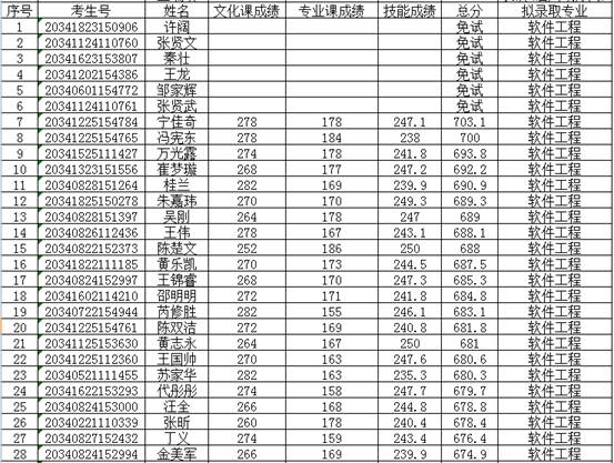 现对预录取考生名单进行公示,公示时间6月15日—6月19日,如有异议,请于6月19日17:00前以书面形式反馈到宿州学院招生就业处(联系电话:0557-2875361,传真:0557-2875360),也可直接向宿州学院纪委办公室(监察专员办公室)反馈(电话:0557-2875950)。预录取名单如下: