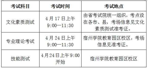 考试内容为“知识+技能”,以教育部颁布的现行教学大纲及专业教学标准为依据。其中,文化课考试内容参照全省统一的《安徽省普通高校分类考试招生和对口招生文化素质测试考试纲要》;专业理论考试及技能测试内容参考《安徽省普通高校对口招生专业理论和技能测试考试纲要(2021年版)》。